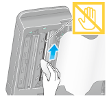 Pulse la marca de la mano que hay en el centro de la guía de apertura y cierre y compruebe que la guía de apertura y cierre está bloqueada.