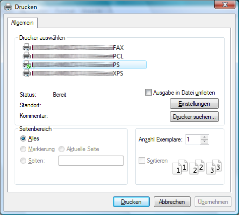 Das Aussehen des Dialogfelds [Print] ist in Abhängigkeit von der verwendeten Anwendung unterschiedlich.