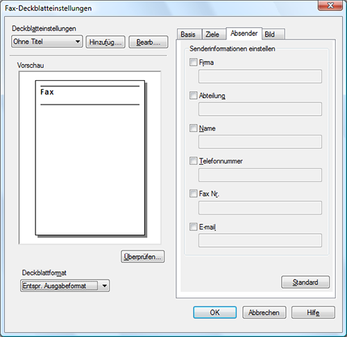 Geben Sie auf der Registerkarte [Absender] die Absenderinformationen ein (max. 80 Zeichen pro Eintrag).