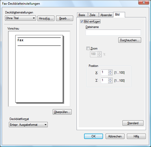 Wählen Sie in [Deckblattformat] ein Format für das Deckblatt aus.