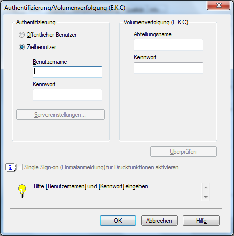 Wenn Sie immer denselben Benutzernamen und dasselbe Kennwort verwenden, können Sie diese Angaben vorab registrieren, damit Sie sie nicht jedes Mal eingeben müssen. Ausführliche Informationen finden Sie Hier.