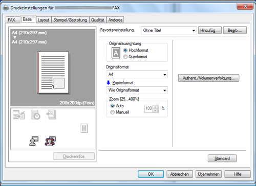 Klicken Sie auf der Registerkarte [Basis] auf [Authent./Volumenverfolgung...]