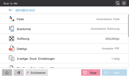Nach der Auswahl von [Scan to Me] im Startbildschirm können Sie einfach und problemlos eine E-Mail nur an sich selbst senden.