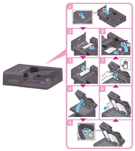 Home > Risoluzione dei problemi > Quando si verifica un inceppamento della carta/dei nastri > Quando si è verificato un inceppamento della carta > Inceppamento della carta nel ADF