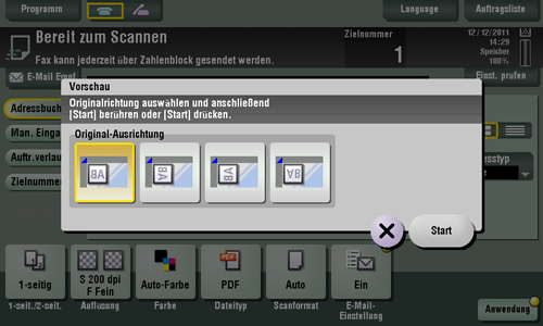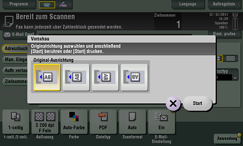 Wählen Sie Ausrichtung aus, in der das Original eingelegt ist.