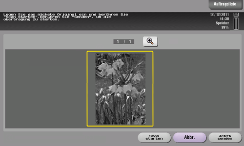 Nach dem Scannen aller Originale tippen Sie auf [Jetzt senden] oder drücken Sie Start.