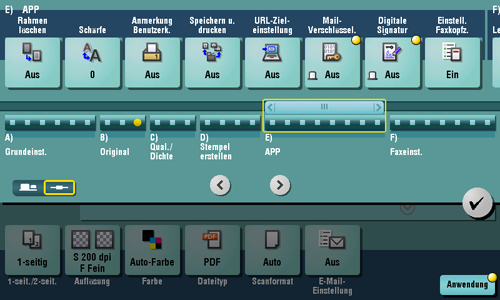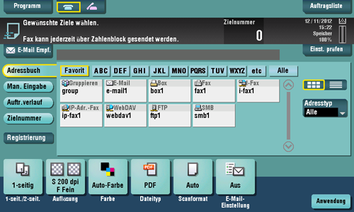 • Tippen Sie vor dem Senden auf [Einst. prüfen] und prüfen Sie ggf. Ziel und Einstellungen.