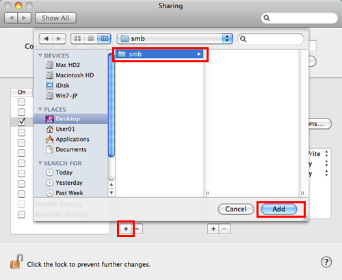Klicken Sie auf [+]. Wählen Sie auf dem angezeigten Bildschirm den erstellten Ordner aus und klicken Sie dann auf [Add].