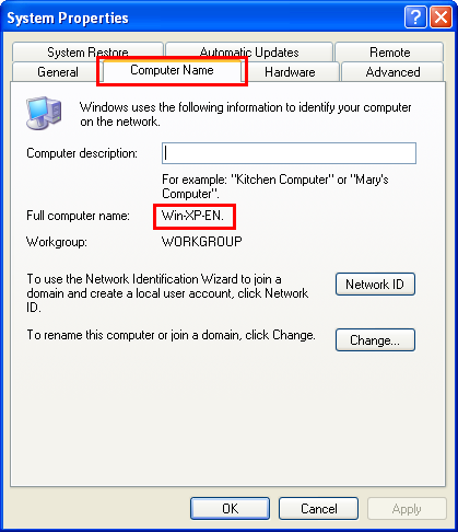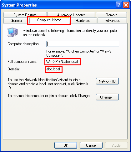 Klicken Sie auf die Registerkarte [Computername] und aktivieren Sie [Vollständiger Computername].