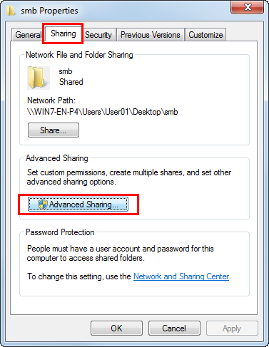 Klicken Sie auf die Registerkarte [Freigabe] und auch auf [Erweiterte Freigabe].