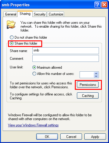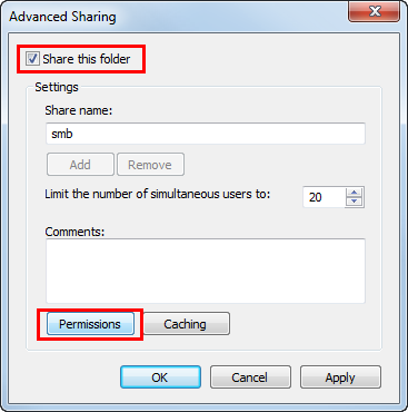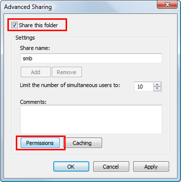 Aktivieren Sie das Kontrollkästchen [Diesen Ordner freigeben] und klicken Sie dann auf [Berechtigungen].