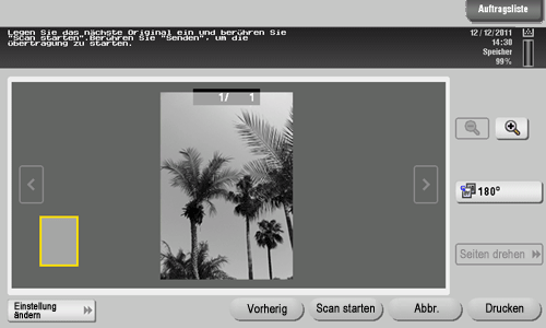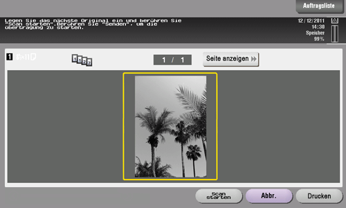 Das Original wird gescannt und der Vorschaubildschirm wird angezeigt.