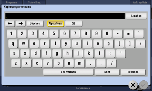 Ein Programm ist eine Funktion, mit der eine Kombination aus verschiedenen Kopiereinstellungen als Abruftaste registriert werden kann. Das Programm, das im Kopiermodus registriert werden muss, wird als Kopierprogramm bezeichnet.