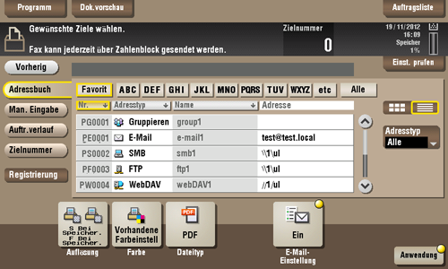 Wählen Sie aus dem [Adressbuch] ein auf diesem System registriertes Ziel aus.