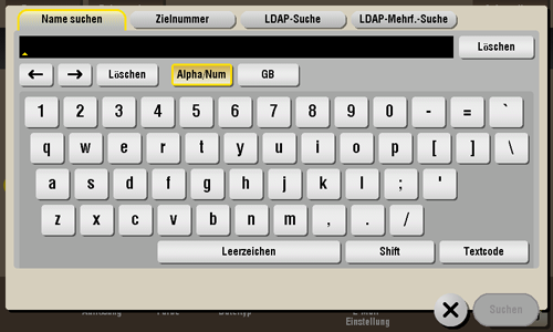 Tippen Sie auf [Zielnummer] - [Suchen] - [LDAP-Suche] oder [LDAP-Mehrf.-Suche].
