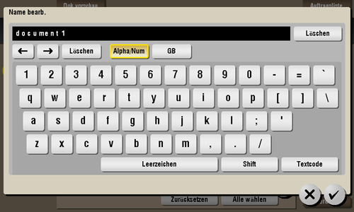 Wählen Sie eine Datei und tippen Sie dann auf [Andere] - [Name bearb.]. Jetzt können Sie die Datei umbenennen. Geben Sie über das Touch Display einen neuen Namen ein.