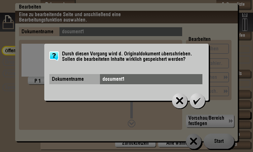 Wählen Sie eine Datei aus und tippen Sie dann auf [Umordnen]. Jetzt können Sie die Datei in eine andere Box verschieben. Als Ziel kann eine öffentliche Box, eine persönliche Box oder eine Gruppenbox verwendet werden. Wählen Sie eine Zielbox aus und tippen Sie dann auf [Start] oder drücken Sie die Taste Start.