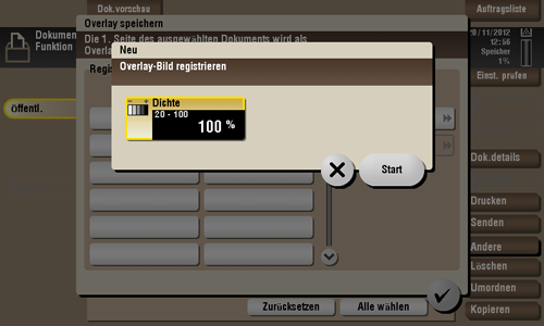 Nach der Registrierung können Sie während des Kopierens oder Druckens über einen PC ein Overlay-Bild auf dem Original erstellen. Sie können auch während des Dateidrucks ein Overlay-Bild auf einer Boxdatei erstellen.
