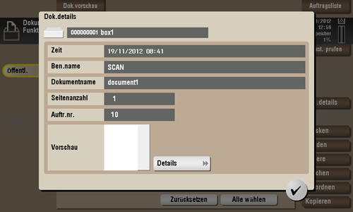 Wählen Sie eine Datei und tippen Sie dann auf [Dok.details], um detaillierte Dateiinformationen abzurufen.