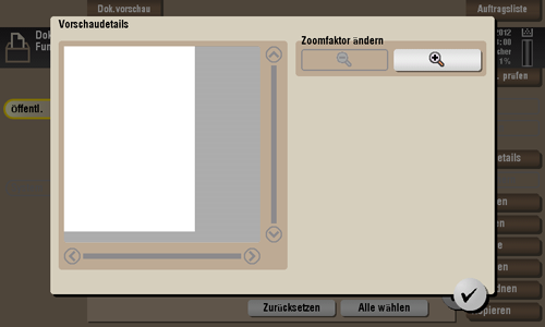 [Vorschau/Bereich festlegen] | Legt einen Seitenbereich fest und stellt diesen als Vorschaubild dar. Sie können auch das Anzeigeformat ändern. |