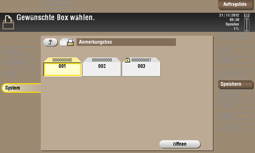 Wählen Sie die gewünschte Box und tippen Sie dann auf [Öffnen].