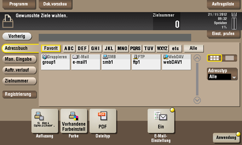 Legen Sie gegebenenfalls Optionen für den Dateiversand fest.