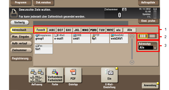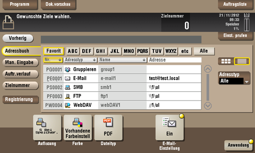 Wählen Sie aus dem [Adressbuch] ein auf diesem System registriertes Ziel aus.