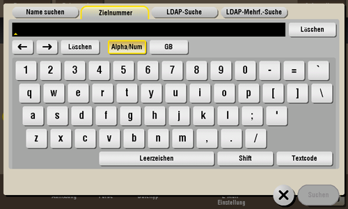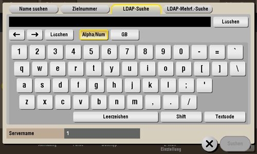 Tippen Sie auf [Zielnummer] - [Suchen] - [LDAP-Suche] oder [LDAP-Mehrf.-Suche].