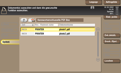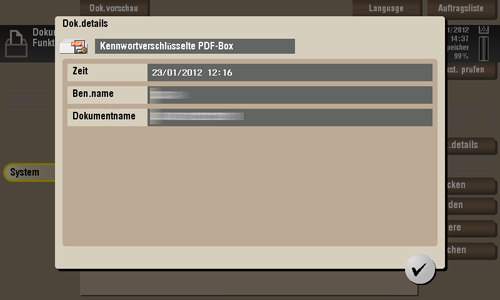 Tippen Sie auf [System] - [Kennwortverschl. PDF].
