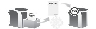 Wenn auf einem Gerät, das die Kopiersperre unterstützt, ein kopiergeschütztes Blatt kopiert wird, wird das Muster für die Kopiersperre gescannt. Der Kopiervorgang wird daraufhin abgebrochen und der Auftrag wird gelöscht.