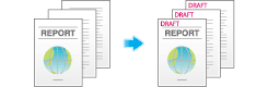 Text, wie z. B. "Bitte um Antwort" oder "Verschlusssache", kann auf der ersten Seite oder auf allen Seiten gedruckt werden. Sie können den hinzuzufügenden Text aus den registrierten festen Stempeln und den eigenen registrierten Stempeln auswählen.