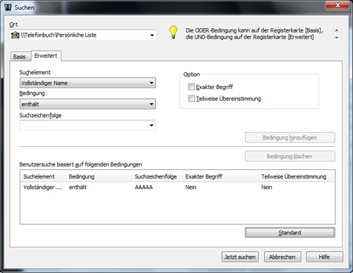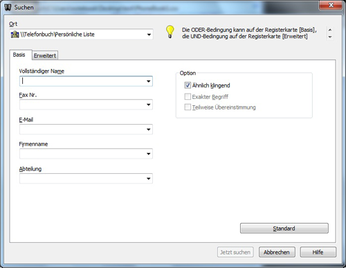 Die [Basis]-Suche zeigt Empfänger an, die eine beliebige der Suchbedingungen erfüllen. Geben Sie die Suchzeichen ein und klicken Sie auf [Jetzt suchen].