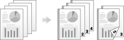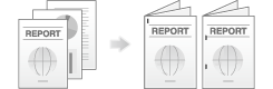 Die eingelegten Originalseiten werden automatisch in einer für die Mittelbindung passenden Reihenfolge angeordnet und die 2-auf-1-Funktion wird aktiviert, um auf beide Blattseiten zu kopieren.