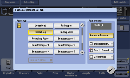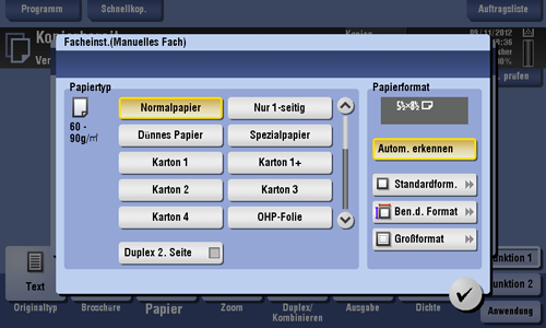 Wählen Sie eine der Papiertypoptionen aus und tippen Sie dann auf [Ben.d. Format].