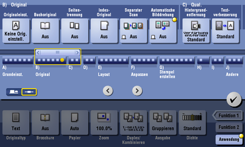 Tippen Sie auf [Anwendung] und wählen Sie [Buchoriginal] aus.