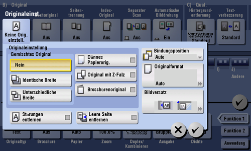 Ist [Originaleinst.] nicht auf [Gemischtes Original] eingestellt?