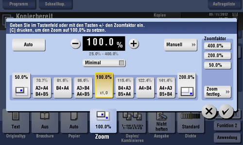 Wurde der Kopierzoomfaktor manuell festgelegt?