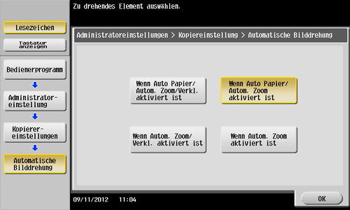 Wählen Sie [Kopierereinstellungen] - [Automatische Bilddrehung] aus.