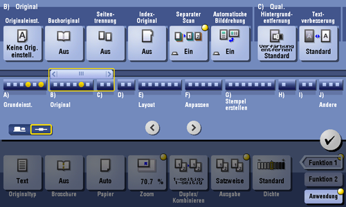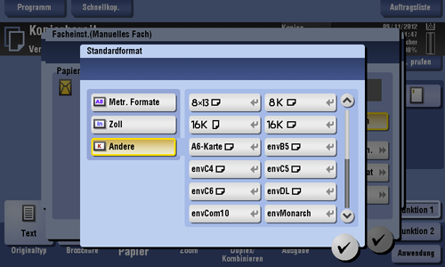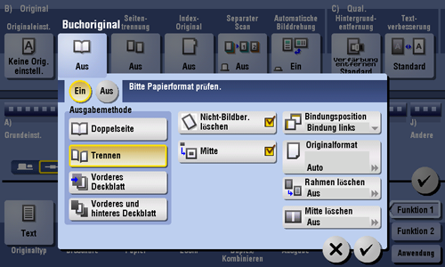 [Originalformat] | Wählen Sie das Format des zu kopierenden Originals aus. |