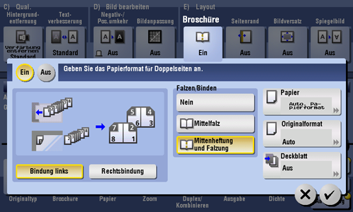 F5. Kann ich für einen Kopierauftrag eine broschürenähnliche Ausgabe verwenden?