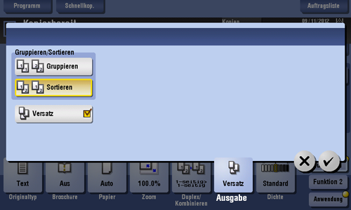 Um das Kopieren mit Mittelbindung zu aktivieren, muss am System der optionale Finisher und ein optionaler Broschürenfinisher installiert sein.