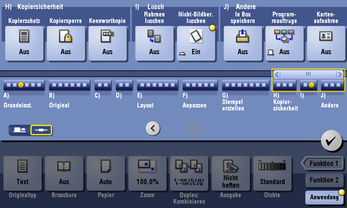 Tippen Sie auf [Anwendung] und wählen Sie [Kopierschutz] aus.