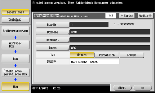 Wählen Sie [Box] - [Öffentliche/persönliche Box] aus.