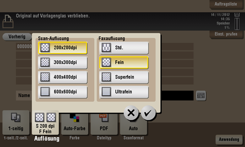 Wählen Sie eine Auflösung für das Scannen des Originals.
