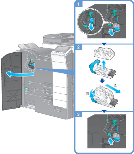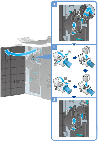 Be sure to replace the Staple Cartridge after the relevant message has appeared. If a Staple Cartridge is removed before the relevant message appears, it may result in a failure.