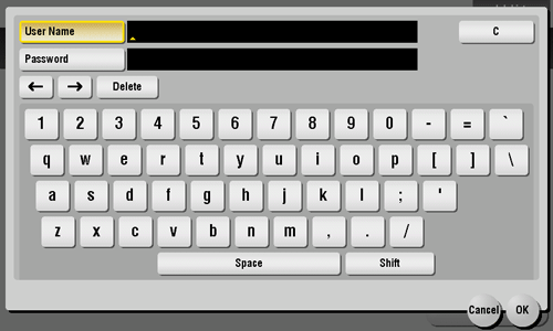 When executing the authentication with the password alone, the Keypad remains displayed on the screen. If the password is numeral alone, it is possible to directly enter the password.