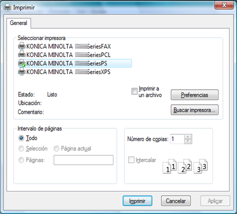 El cuadro de diálogo [Imprimir] varía según el software de la aplicación.