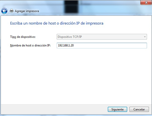 El procedimiento para instalar el controlador de impresora mediante la especificación de la dirección IP es el siguiente: