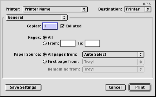 En [General] de la ventana [Print], puede definir la configuración básica para la impresión, como puede ser el número de copias o el rango de impresión.