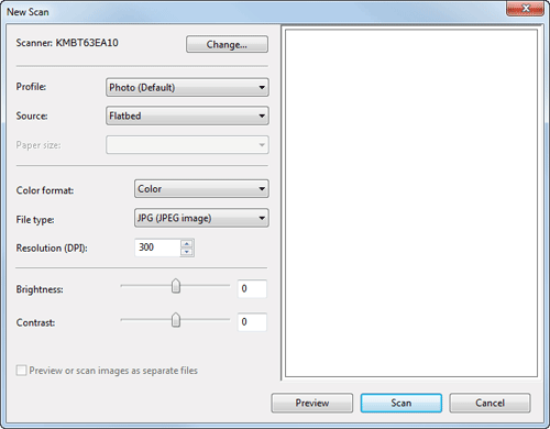 Si selecciona [Plano] en [Fuente], haga clic en [Vista previa] antes de guardar los datos como archivo y compruebe la imagen del original escaneado.